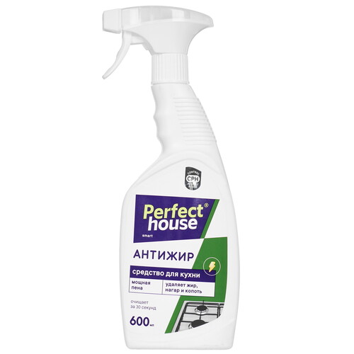 Средство антижир Perfect House удаляет жировые, белковые, масляные загрязнения, копоть, нагар и стойкие, въевшиеся загрязнения всего за 30 секунд! Активные чистящие вещества спрея отличаются глубоким воздействием, которые без усилий и разводов выводят липкие пятна, при этом оставляют покрытия целыми и блестящими, продлевая срок службы.