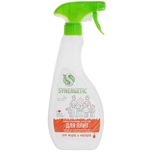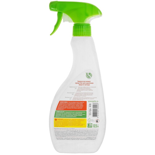 Чистящее средство Synergetic 106052 служит для удаления загрязнений с плит, духовых шкафов, сковородок, гриля. Для локального распыления предусмотрен пульверизатор. Объем составляет 0.5 л.