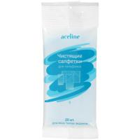 Салфетка Aceline для мобильных устройств поставляется в мягкой упаковке с защитным клапаном. В комплекте есть 20 салфеток размером 10х19 см, которые удобно извлекаются с помощью специальной прорези.