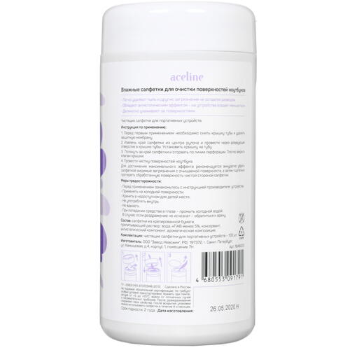Салфетки Aceline одноразовые поставляются в герметичной тубе. Они пропитаны специальным составом и идеально подходят для очистки поверхностей и экранов ноутбуков, смартфонов, планшетов, обеспечивая им деликатный уход. После использования салфеток на них не остается грязи и неэстетичных разводов. Благодаря антистатическому эффекту обработанные этим средством экраны притягивают меньше пыли. В тубе поставляется сразу 105 салфеток Aceline. Такого количества хватит надолго, поэтому применять их можно и дома, и в офисе.