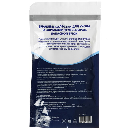 для экранов, салфеток - 100 шт, комплект - влажные салфетки, для экранов