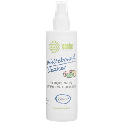 Спрей Cactus CS-WB250 предназначен для очистки маркерных досок и пластиковых поверхностей. Объем изделия – 250 мл. В состав спрея Cactus CS-WB250 входят вода, изопропиловый спирт и нПАВ.