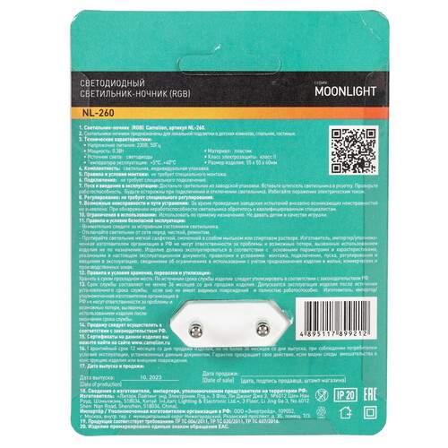 Ночник Camelion NL-260 – это светильник, который предназначен для локальной подсветки в детских, спальнях и гостиных. Он работает от сети и имеет встроенные светодиоды.
