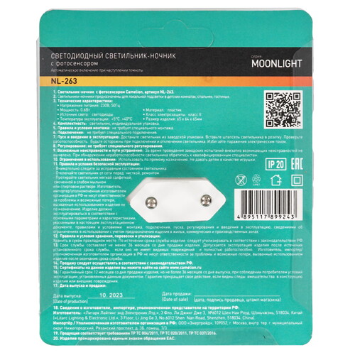 Ночник Camelion NL-263 – это светильник, который предназначен для локальной подсветки в детских, спальнях и гостиных. Он работает от сети и имеет встроенные светодиоды.