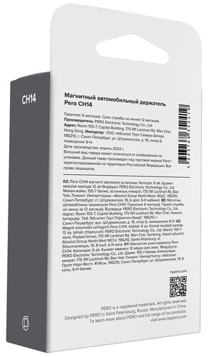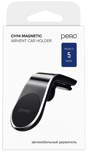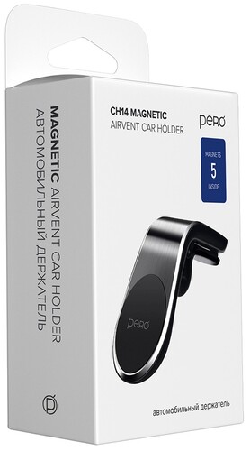 Автомобильный держатель PERO CH14 с пятью магнитами крепится к решетке воздуховода в автомобиль при помощи прочного зажима. Прорезиненная поверхность магнитной части держателя.