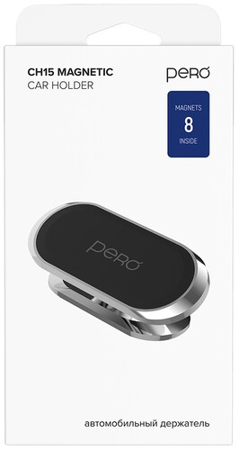 Автомобильный держатель в серебристом цвете PERO CH15 позволяет удерживать смартфон с помощью магнитного крепления. Установка держателя осуществляется на 3M-скотч на приборную панель автомобиля. Материал PERO CH15 выполнен из пластика и силикона.