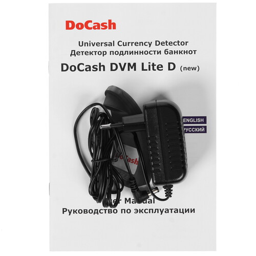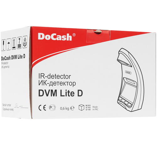 Прибор DoCash Lite D оснащен удобной функцией автовыключения. Работа осуществляется от стандартной электросети при потреблении 12 Вт. Данная модель весит 600 г и обладает размерами 16.5x25.5x13 см.
