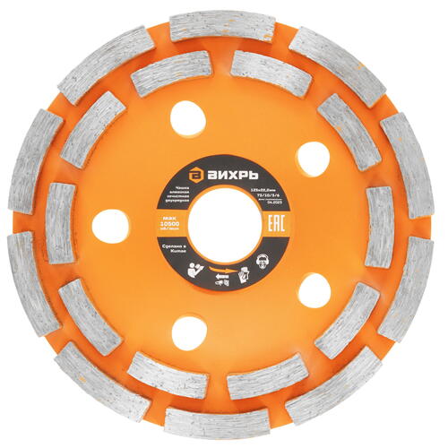 Чашка алмазная зачистная, 125 мм, двухрядная предназначена для интенсивной грубой зачистки бетона, мрамора, камня, кирпича, гранита.
