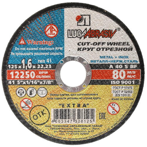 Высококачественный диск отрезной Луга 73656 ставится в углошлифовальные машины. Посадочный размер у него – 22.2 мм, а наружный диаметр – 125 мм. Он совместим с рядом УШМ, вращается на скорости до 12250 оборотов в минуту.