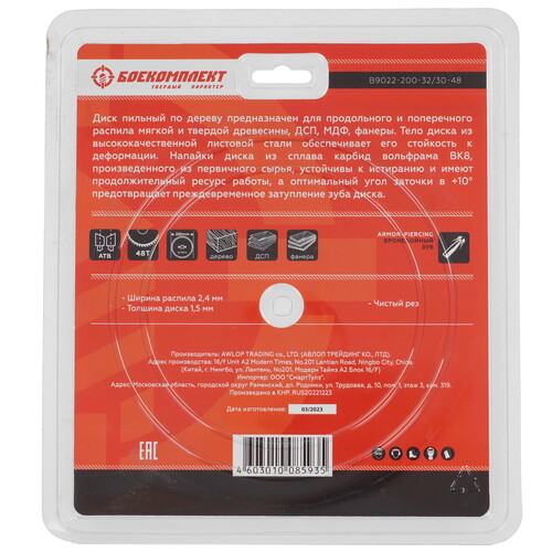 Диск пильный БОЕКОМПЛЕКТ B9022-200-32/30-48 [8158311]