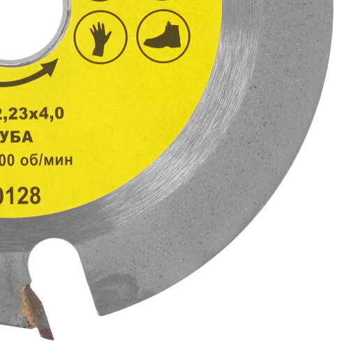 Толщина диска пильного Гранит 300128 составляет 4 мм. Материал изготовления – сталь. Режущие свойства и долговечность диска улучшены благодаря наличию напаек.