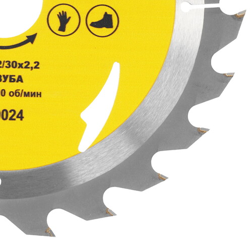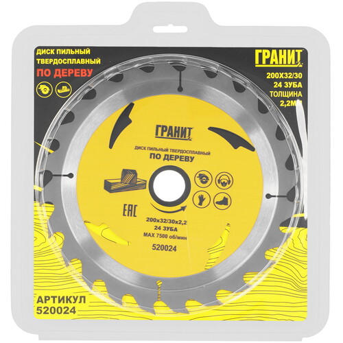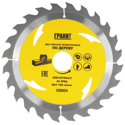 Диск пильный ГРАНИТ 510024 с 24 зубьями используется в качестве оснащения дисковых, торцовочных и торцовочно-комбинированных пил. Изделие из твердого сплава предназначено для пиления древесины. Износостойкость и режущие свойства инструмента улучшают напайки.