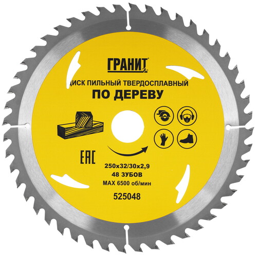 Диск пильный ГРАНИТ 525048 с 48 зубьями используется в качестве оснащения дисковых, торцовочных и торцовочно-комбинированных пил. Изделие из твердого сплава предназначено для пиления древесины. Износостойкость и режущие свойства инструмента улучшают напайки.