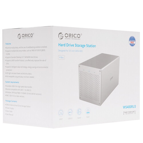 Дисковое хранилище Orico WS400RU3-SV представляет собой алюминиевый контейнер, предназначенный для установки четырех внешних накопителей памяти формата 3.5": для них конструкция хранилища предусматривает четыре отсека. Благодаря повышению скорости передачи информации до 6 Гбит/с, а также увеличению на 20% эффективности работы хранилище гарантирует комфортную работу с объемными файлами. Устройство отличается поддержкой массивов RAID, предусматривая несколько вариантов резервирования с выбором уровня надежности хранения.
