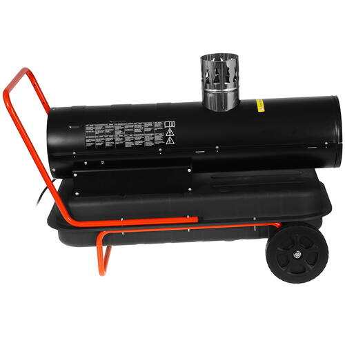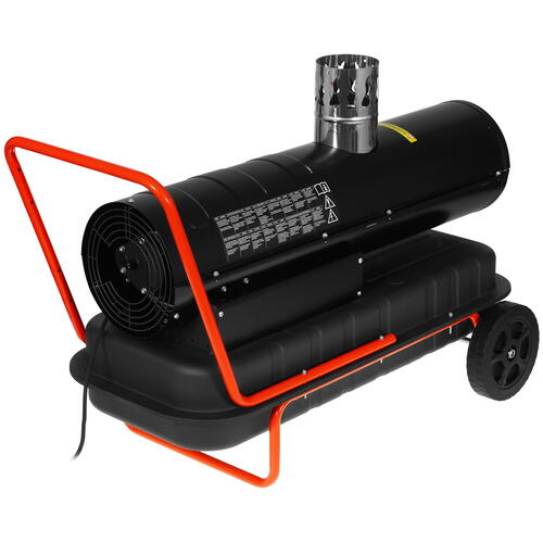 800 м³/ч, обогрев - 32 кВт, расход топлива - 2.9 кг/ч, непрямой нагрев, регулировка температуры, колёса, вес - 27 кг