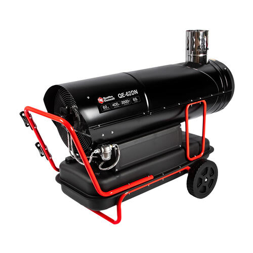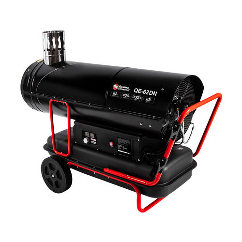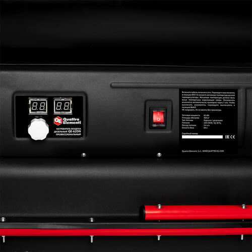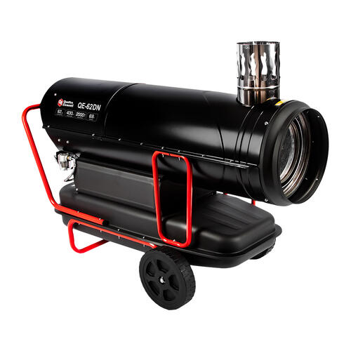 Тепловая пушка Quattro Elementi QE-62DN работает на дизельном топливе и керосине, обладает мощностью 62 кВт. В конструкции используется камера сгорания закрытого типа. Топливный бак вмещает 69 л топлива.