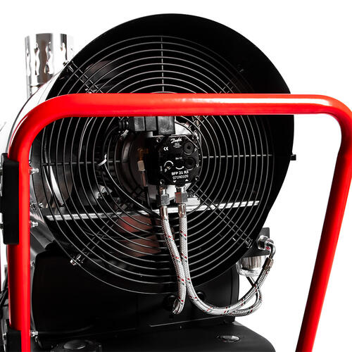 2000 м³/ч, обогрев - 62 кВт, расход топлива - 5.4 кг/ч, непрямой нагрев, регулировка температуры, колёса, вес - 59 кг