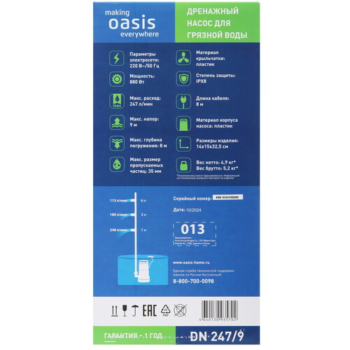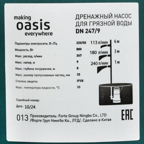 Погружные дренажные насосы «making oasis everywhere» предназначены для откачивания воды из колодцев, погребов, прудов, откачки бассейнов, различных резервуаров и т.п. Дренажные насосы позволяют просто и эффективно справиться с проблемой затопления, ежегодно возникающей при таянии снега на дачном участке. Добываемая дренажными насосами вода может использоваться для полива и орошения.