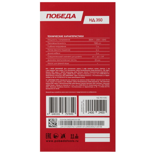 Насос дренажный Patriot Победа НД 350 [5622669]