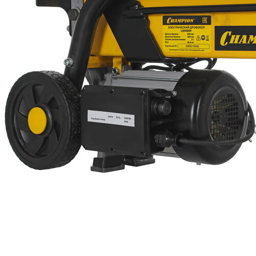 Работает инструмент мощностью 2200 Вт от стандартной электрической розетки. Располагать дровокол CHAMPION LSH5001 допустимо даже в помещении. Он легко справляется с бревнышками длиной до 52 см при диаметре до 25 см.