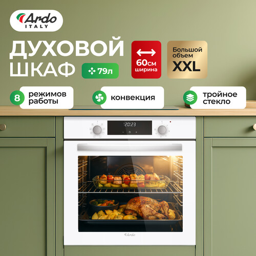 Элегантный встраиваемый духовой шкаф Ardo станет незаменимым помощником на вашей кухне, предлагая впечатляющий объем в 79 литров для реализации самых смелых кулинарных идей. Благодаря 8 режимам работы, включая конвекцию, он обеспечит равномерное приготовление блюд любой сложности.