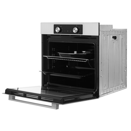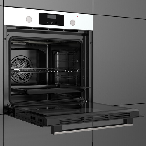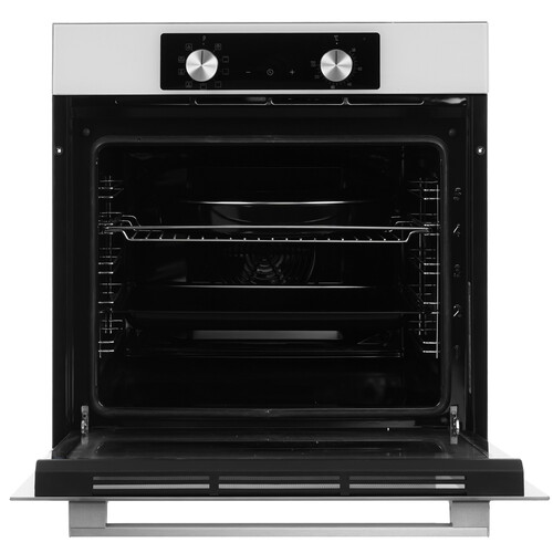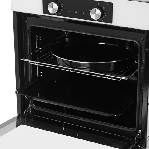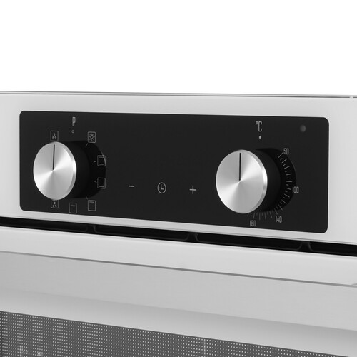 Белый электрический духовой шкаф Ardo BO39EW2 оборудован функциями конвекции и гриля. Поэтому вам будет доступен полный спектр кулинарных возможностей от вяленых овощей до запеченных мяса или рыбы. Регулировка температуры и выбор режима работы происходит с помощью ручек на передней панели духовки и сенсора. На дисплее отображаются температура и время приготовления. Духовка оснащена таймером, по окончании времени приготовления срабатывает звуковой сигнал, и программа отключается.