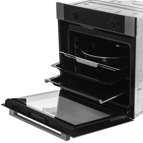 Ardo BO410EAS2 оборудован блокировкой от детей. Управление происходит поворотными ручками и сенсором на передней панели. Дисплей отображает установленное время приготовления и температуру. В конструкции предусмотрен таймер, при завершении работы которого происходит отключение духовки.