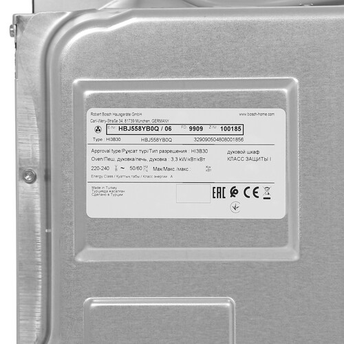 Блокировка от детей препятствует вмешательству ребенка в процесс готовки, обеспечивая тем самым безопасность использования электрического духового шкафа Bosch HBJ558YB0Q. Защитное отключение сработает, если прибор работает так долго, что успел перегреться. Еще одно достоинство модели – ее энергоэффективность. Она относится к экономичному классу А.