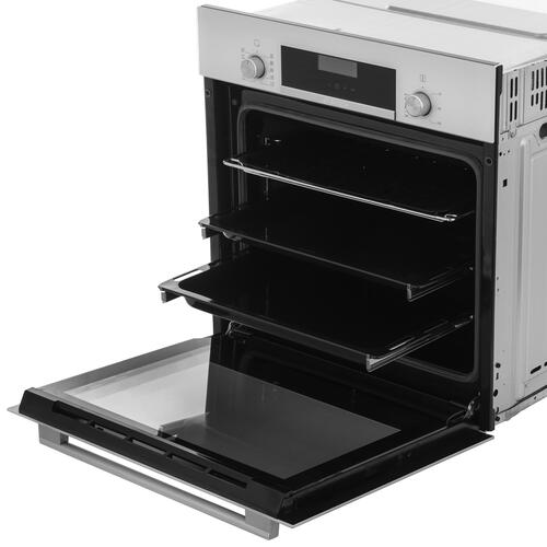 Электрический духовой шкаф Bosch Serie 6 HBJ558YW0Q объемом 66 л поддерживает опцию самоочистки для легкого удаления частиц жира и других загрязнений. Равномерному распределению теплого воздуха и запеканию продуктов способствует режим гриля с конвекцией. Бесшумное и плавное закрытие дверцы обеспечивается встроенным доводчиком. Выбор настроек производится через сенсорные элементы и поворотный переключатель.