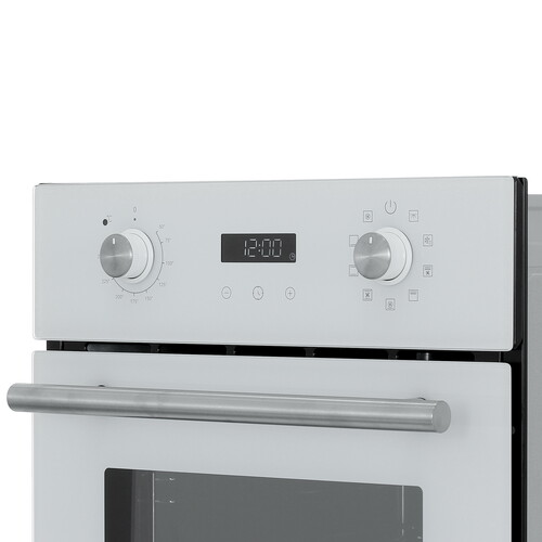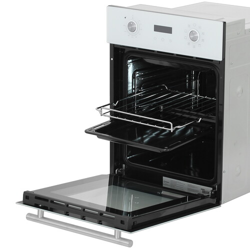 Независимый электрический духовой шкаф в стильном дизайне с утапливаемыми поворотными переключателями. Объем духовки 50л.
