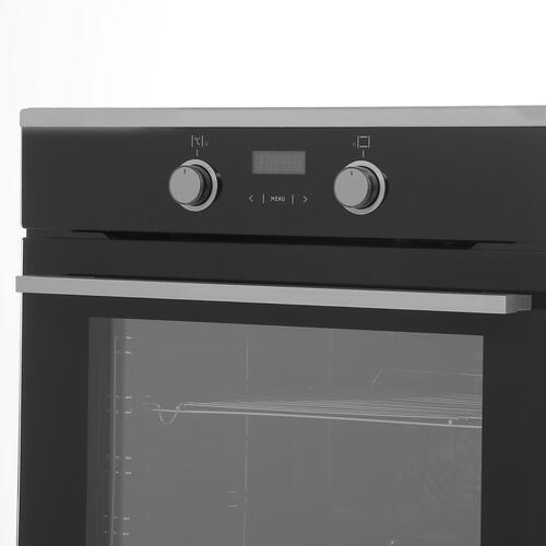Kuppersberg HO 658 T представлен в черном корпусе с серебристыми элементами. Утапливаемые ручки обеспечивают комфортную и, вместе с этим, безопасную эксплуатацию: такая конструкция переключателей позволяет не допустить включения и регулировки режима прибора детьми. В управлении также участвует сенсорная панель, а на дисплее отображается действующий режим и все настройки.