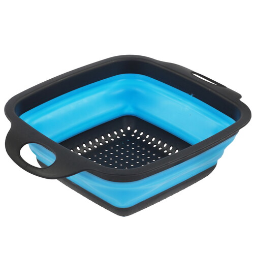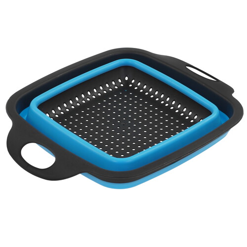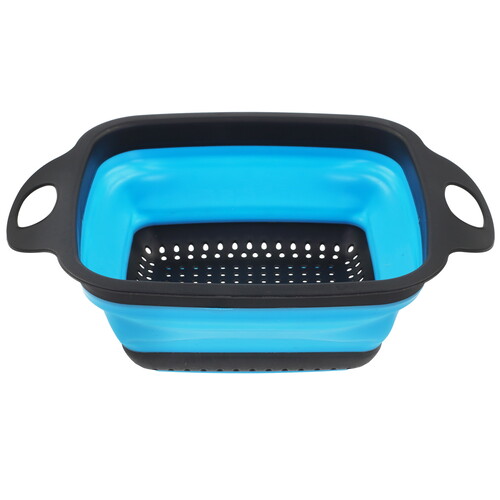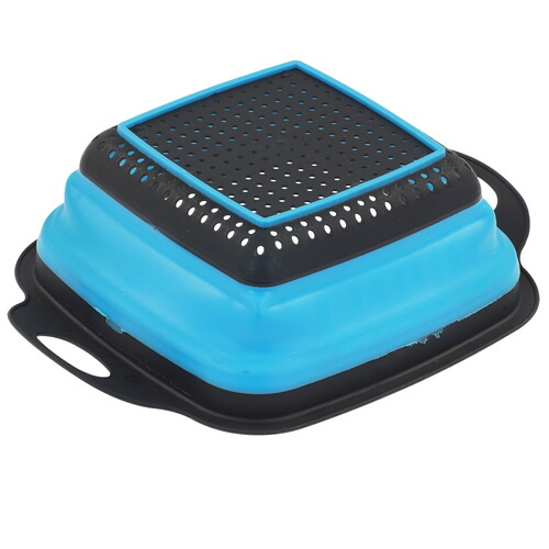 Дуршлаг EUROHOUSE 16449 ‒ практичное приспособление для кухни, которое имеет способность складываться. В сложенном виде аксессуар проще и удобнее хранить. Для хранения в подвешенном состоянии ручки выполнены в виде петель. Он раскладывается легким движением благодаря использованию силикона в конструкции. Ручки и верхний ободок изготовлены из пластика, что делает их жесткими.