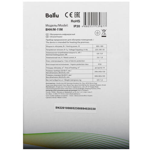 Инфракрасный обогреватель Ballu BHH/M-11M [9008943]