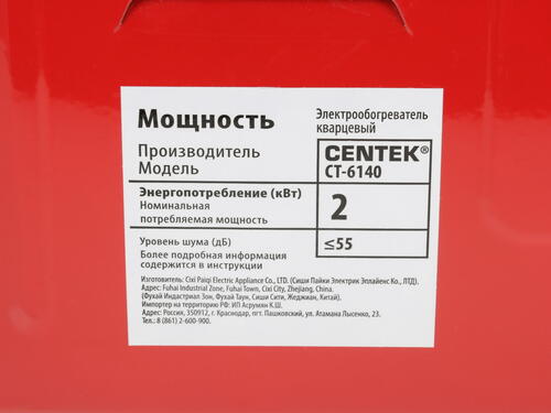 Для безопасности во время эксплуатации модели Centek CT-6140 в ней предусмотрена специальная защитная решетка. Благодаря сетевому шнуру длиной 1 метр вы сможете расположить данный обогреватель в любом удобном для вас месте. На корпусе устройства компактно расположен поворотный переключатель, позволяющий подобрать мощность его работы.