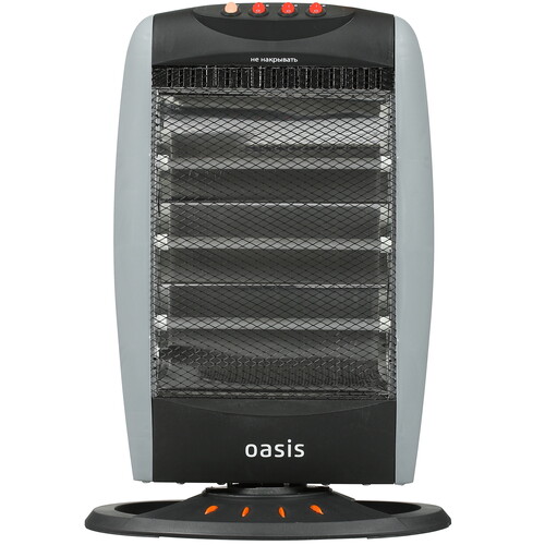 Инфракрасный обогреватель Oasis IS-12P распространяет тепло в помещении за счет технологии инфракрасного излучения (на предметы, стены, поверхности) и поэтому станет надежным решением для обогрева. Он выполнен в металлическом корпусе с возможностью регулировки поворота на 75 градусов и предназначен для обогрева помещения площадью до 20 м². В Oasis IS-12P имеются 3 режима работы с разной мощностью обогрева. Устойчивая подставка на основании гарантирует надежное размещение прибора на полу. Для повышения уровня безопасности реализована технология защиты в случае опрокидывания.