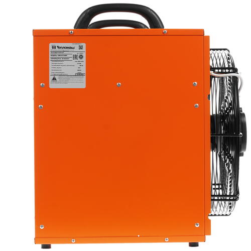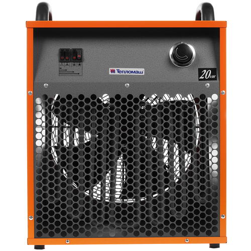 Устройство Тепломаш КЭВ-20Т20Е действует при напряжении в сети 380 B и дополняется эффективной защитой двигателя от перегрева. Конструкция дополнена удобной рукояткой-держателем. Агрегат весит 22.4 кг и имеет размеры 52.4x55.7x45.2 см.