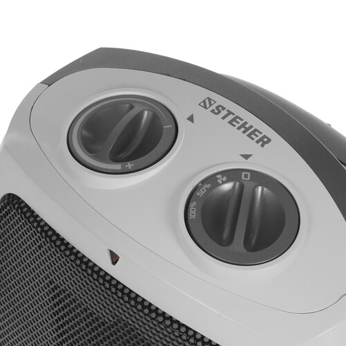 STEHER SVK-2000 поддерживает режим вентиляции без нагрева. Возможна напольная и настольная фиксация прибора. Встроенный термостат контролирует температуру нагрева. При опрокидывании или угрозе перегрева срабатывает система защитного отключения. Перемещение устройства осуществляется с помощью ручки.