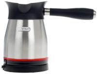Электрическая турка Centek CT-1098 в гармоничном сочетании серебристого и черного элементов корпуса позволит правильно приготовить утренний кофе, которым вы не устанете наслаждаться. Мощность прибора составляет 480 Вт. Его емкость рассчитана на 0.5 л жидкости, поэтому за один раз вы сможете приготовить одну порцию крепкого напитка. Модель поддерживает поворот на 360 градусов и опцию автоотключения без воды, что позволяет защитить от внезапной поломки модели.