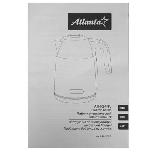 Корпус чайника Atlanta ATH-2445 изготовлен из нержавеющей стали. У прибора специальная ручка предотвращающая скольжение. Модель объемом 1.7 л обеспечивает быстрое закипание.