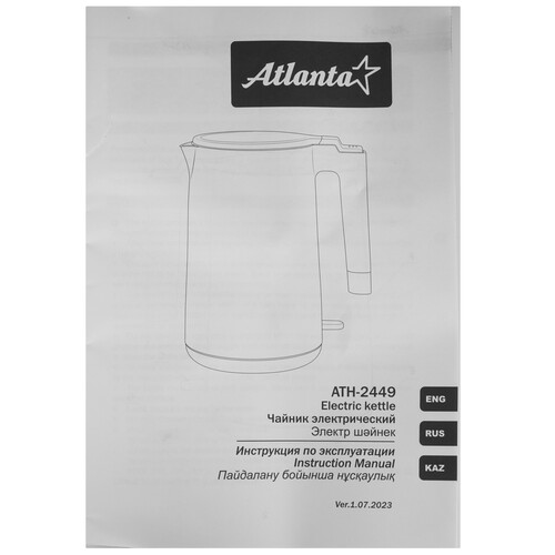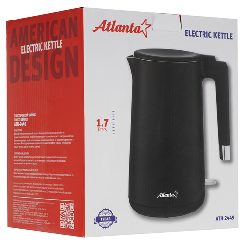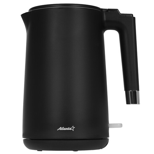 Чайник Atlanta ATH-2449 (black) имеет металлический корпус с двойными стенками, чем обеспечивается высокий уровень термоизоляции.