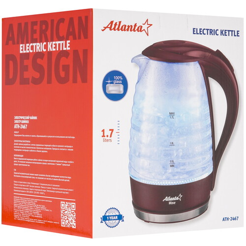 Электрочайник Atlanta ATH-2467 бордовый [9191816]
