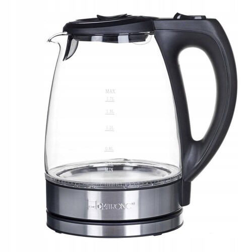 1.7 л, 2200 Вт, скрытый нагревательный элемент, фильтр, материал корпуса - термостойкое стекло