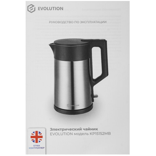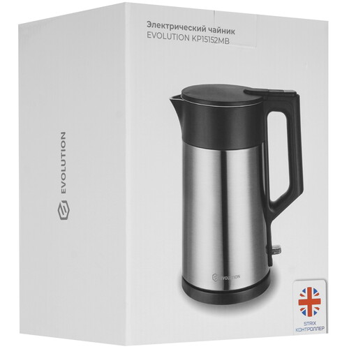 В электрических чайниках EVOLUTION используется контроллер британского производителя STRIX. Контроллер или контактная группа расположена в месте соединения чайника с подставкой. Деталь отвечает за отключение чайника при закипании и включении без воды. Прибор прослужит долго благодаря высококачественному контролеру, чайник выдерживает до 15 000 циклов кипячения. Чайник не сгорит, даже если случайно включить его без воды: система защиты от перегрева обязательно сработает и отключит его. Дизайн технологичного прибора соответствует последним трендам рынка бытовой техники, поэтому легко впишется в интерьер любой кухни и украсит ее.