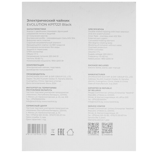 Электрочайник Evolution KP17221 черный [9215212]