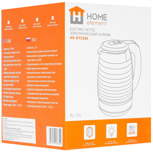 Электрочайник HOME ELEMENT HE-KT2306 красный рубин черный [9091597]
