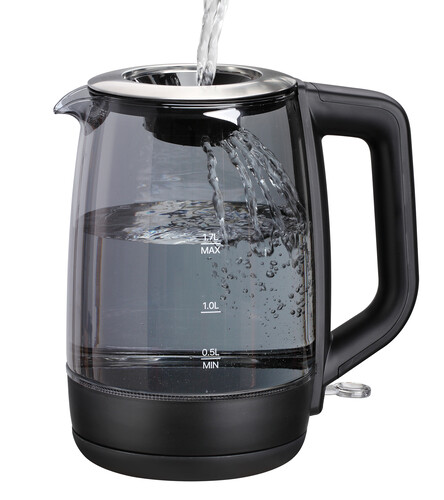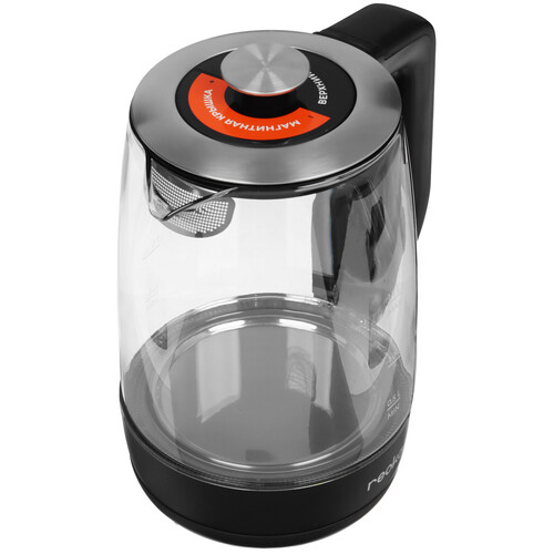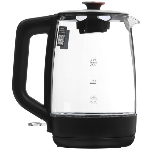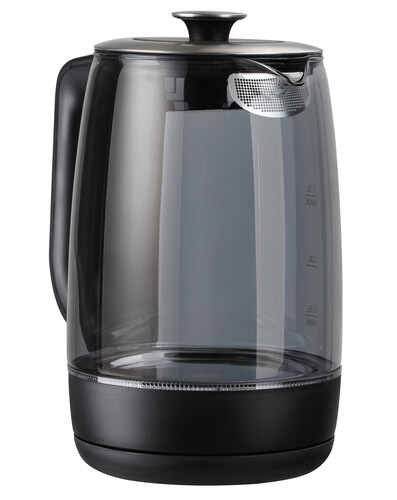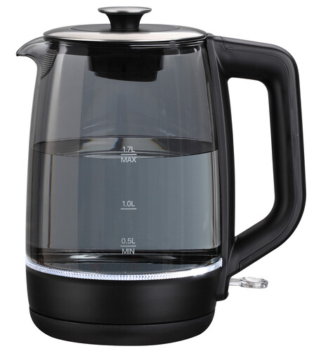 1.7 л, 1900 Вт, скрытый нагревательный элемент, фильтр, материал корпуса - термостойкое стекло
