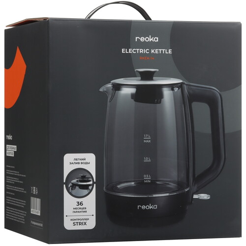 Электрочайник Reoka RKEK-14 с белой подсветкой при включении работает в одном режиме кипячения до 100 °C. В носике есть металлический фильтр для защиты от попадания накипи в кружку. Эргономичный дизайн позволяет заливать воду через крышку. Встроенный контроллер STRIX отключает устройство при закипании и защищает от перегрева. Скрытый ТЭН облегчает очистку дна и стенок от налета, частиц накипи и прочих загрязнений.