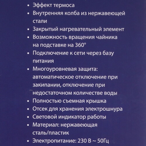 2 л, 1800 Вт, скрытый нагревательный элемент, фильтр, материал корпуса - металл\пластик