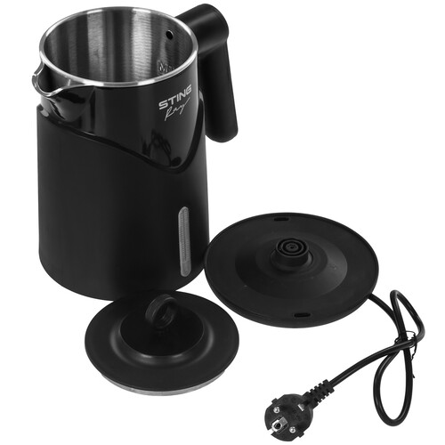 Электрочайник Stingray ST-KT3008A имеет полностью съемную крышку для удобного наполнения и очистки 2-литрового резервуара. Корпус из черного пластика и металла дополнен двойными стенками, которые создают эффект термоса и предупреждают остывание жидкости. Расположенный в носике фильтр из нержавеющей стали не допускает попадание частиц накипи в чашку с чаем или кофе.