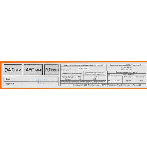 покрытие - рутил, диаметр - 4 мм, длина - 450 мм, 1 кг